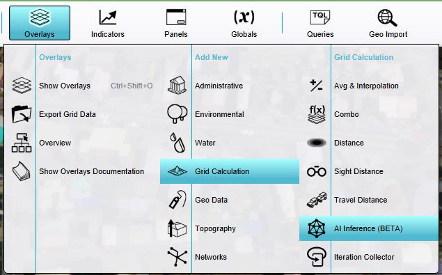 - In the overlay popup menu, hover over Grid Calculation and click on the option AI Inference.
