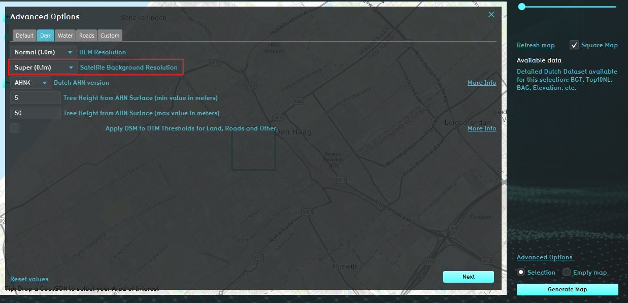 - Adjust the choice-box next to Satellite Background Resolution