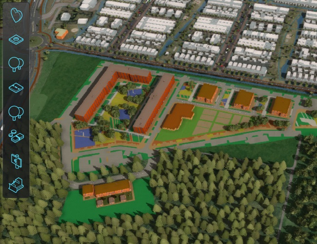 2. A second version of the 3D world is loaded into memory in the Tygron Platform. The original situation is kept as the "current" or "original" view. This will represent the situation of the location "now", without any additional future actions taken. A second view is the "maquette" or "planned", which represents the state of the same location after actions and interventions have taken place, such as the development of urban plans.