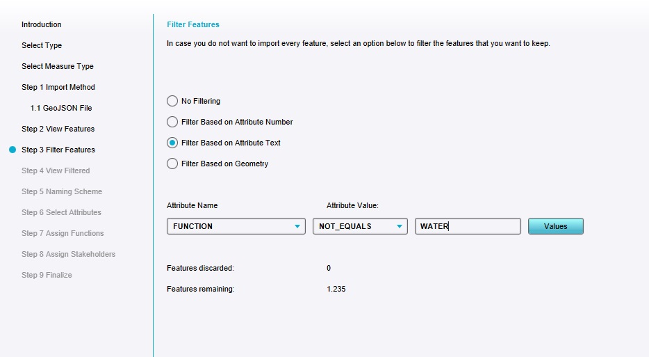 A variety of geographical data types can be imported, each with their own intended applications. Opt to import a Measure.