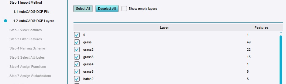 1. Expand the imported Measure with water, features for which are also defined in the DXF. Use: