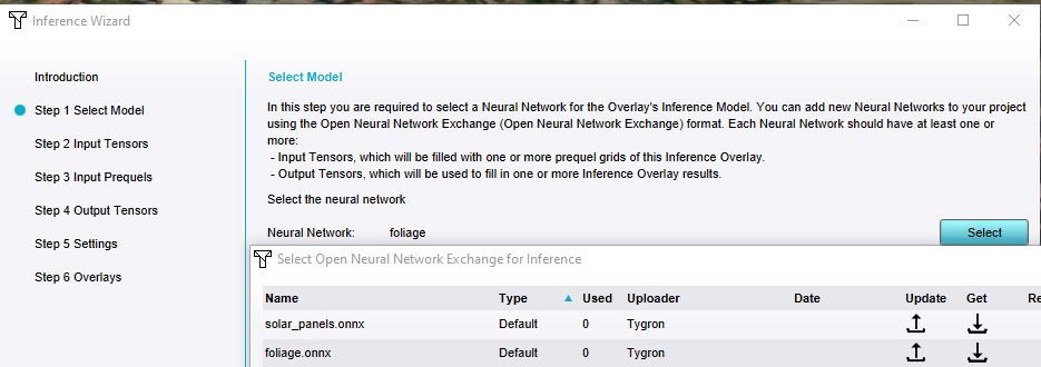 Selecting a Neural Network in the Inference Overlay Wizard